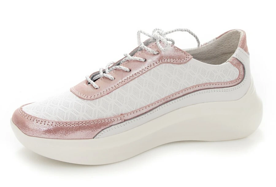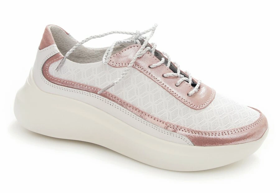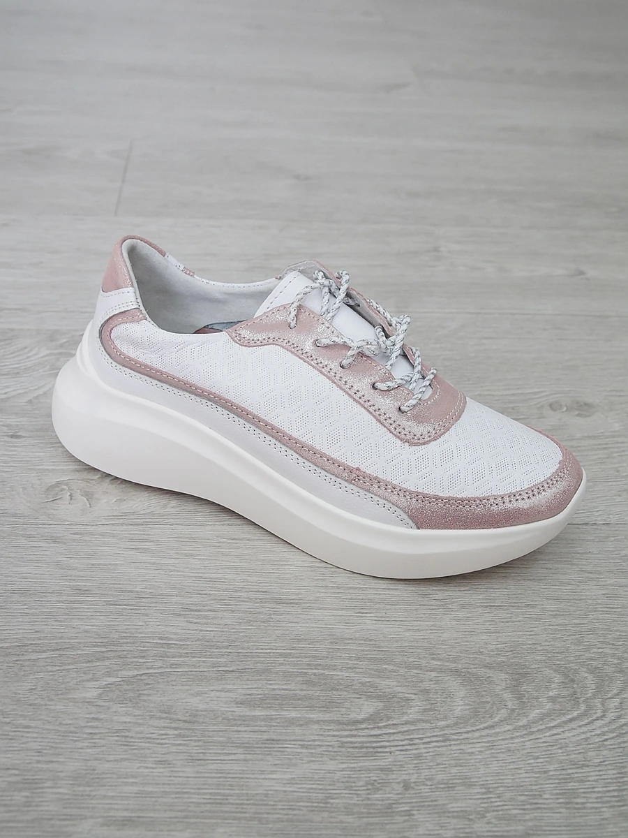 Летние кроссовки – комфорт и стиль в каждой детали! Шнуровка обеспечивает надежную фиксацию стопы, композиционная кожа верха представляет собой слой натуральной кожи, покрытый напылением, гарантирует долговечность! Натуральная кожа и текстиль подкладки создают приятную атмосферу для ваших ног. Обувь идеально подходит для весенне-летнего сезона. Разнообразие белого и розового цветов позволит подчеркнуть индивидуальность вашего образа.