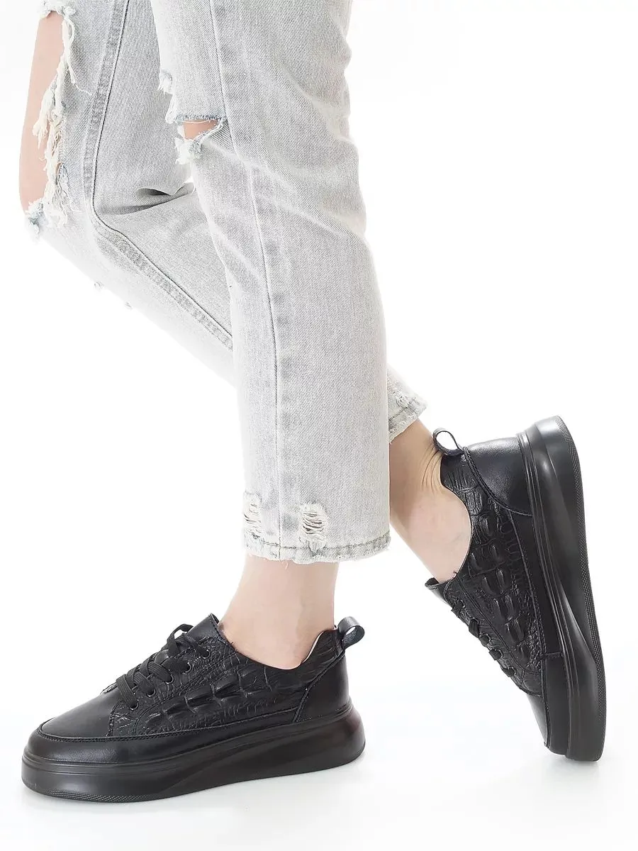 Удобные женские кроссовки - идеальный выбор для тех, кто ищет комфортную и стильную обувь. Кроссовки женские изготовлены полностью из натуральной кожи. С помощью шнуровки легко регулировать степень фиксации на ноге, достигая идеальной посадки и приятных ощущений даже во время длительных прогулок. Кроссовки женские черные не только функциональны, но и очень стильные. Они идеально сочетаются с джинсами, лосинами или платьем. Кроссы женские отлично подойдут для работы в офисе или для повседневной носки. Модные кроссовки женские демисезонные – лучшее решение для девушек и женщин.