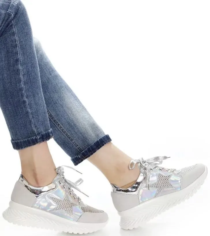 Лучшее решение в весенний и летний период. Комбинация верха и блестящие шнурки придают модели оригинальности. Кроссы женские отлично подойдут для работы в офисе, для повседневной носки, активного отдыха и туризма. Обратите внимание – в данной модели блестящая подошва.