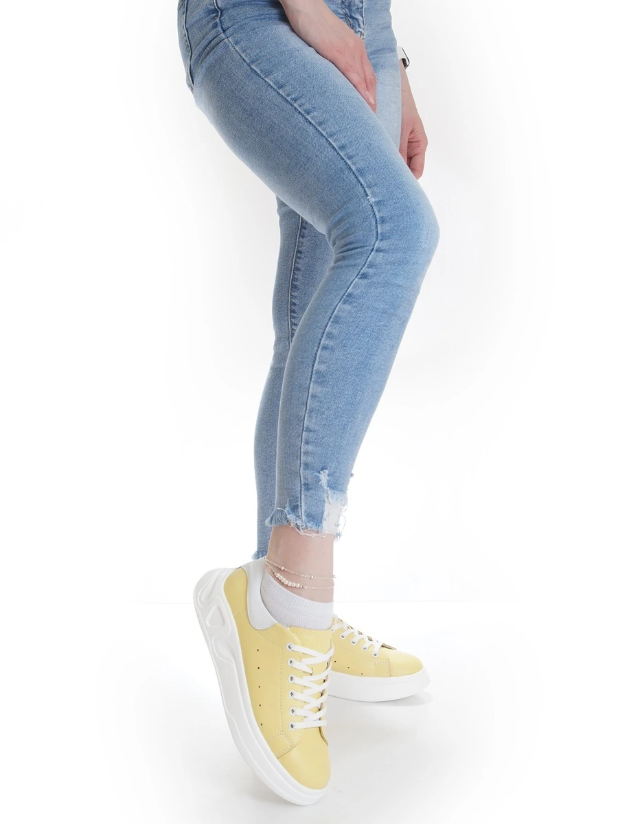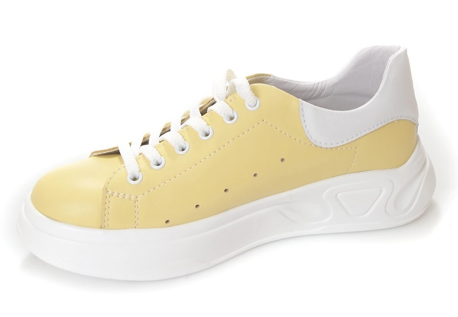Летние женские желтые кроссовки – идеальное сочетание комфорта и стиля! Прочная натуральная кожа обеспечивает долговечность и защиту от влаги, а мягкая подкладка гарантирует приятное ощущение при носке. Подходит на все сезоны теплой поры года – лето, весну и осень. Эргономичная подошва из ПВХ делает ходьбу легкой и удобной. Выберите комфорт и моду одновременно!