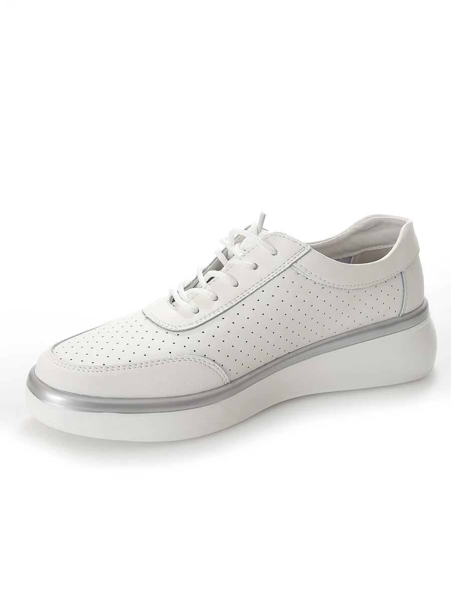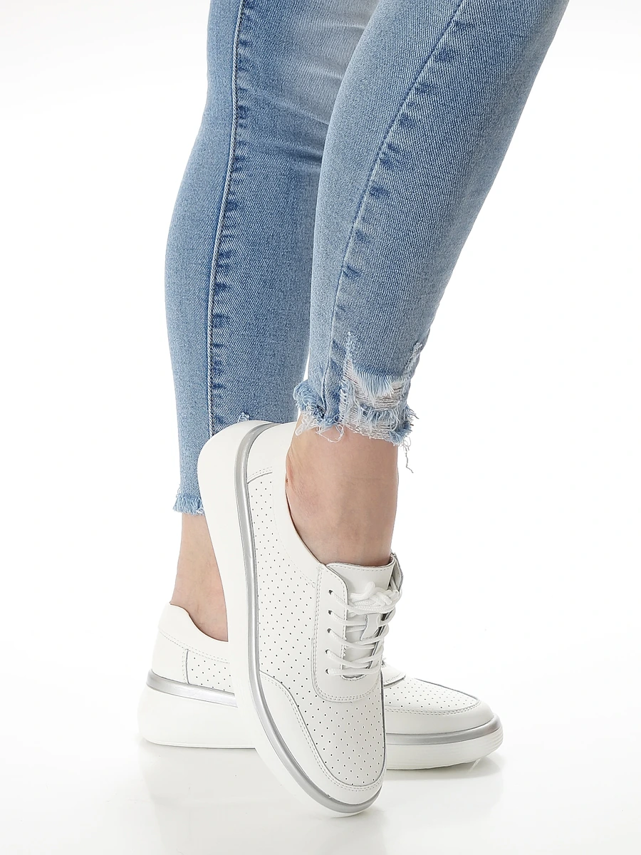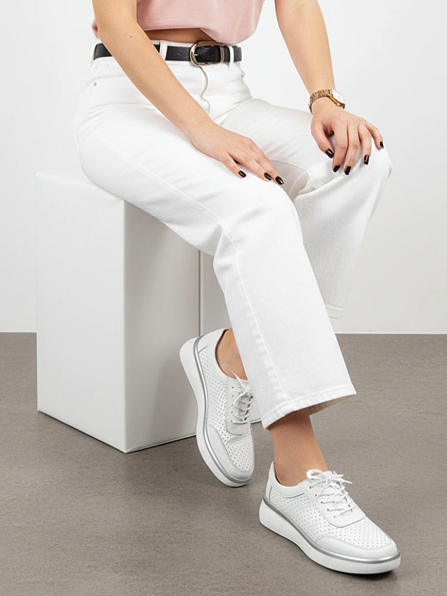 Женские кожаные кроссовки - идеальный выбор для тех, кто ищет комфортную и стильную обувь. Модель изготовлена из натуральной кожи. Перфорация способствует вентиляции.