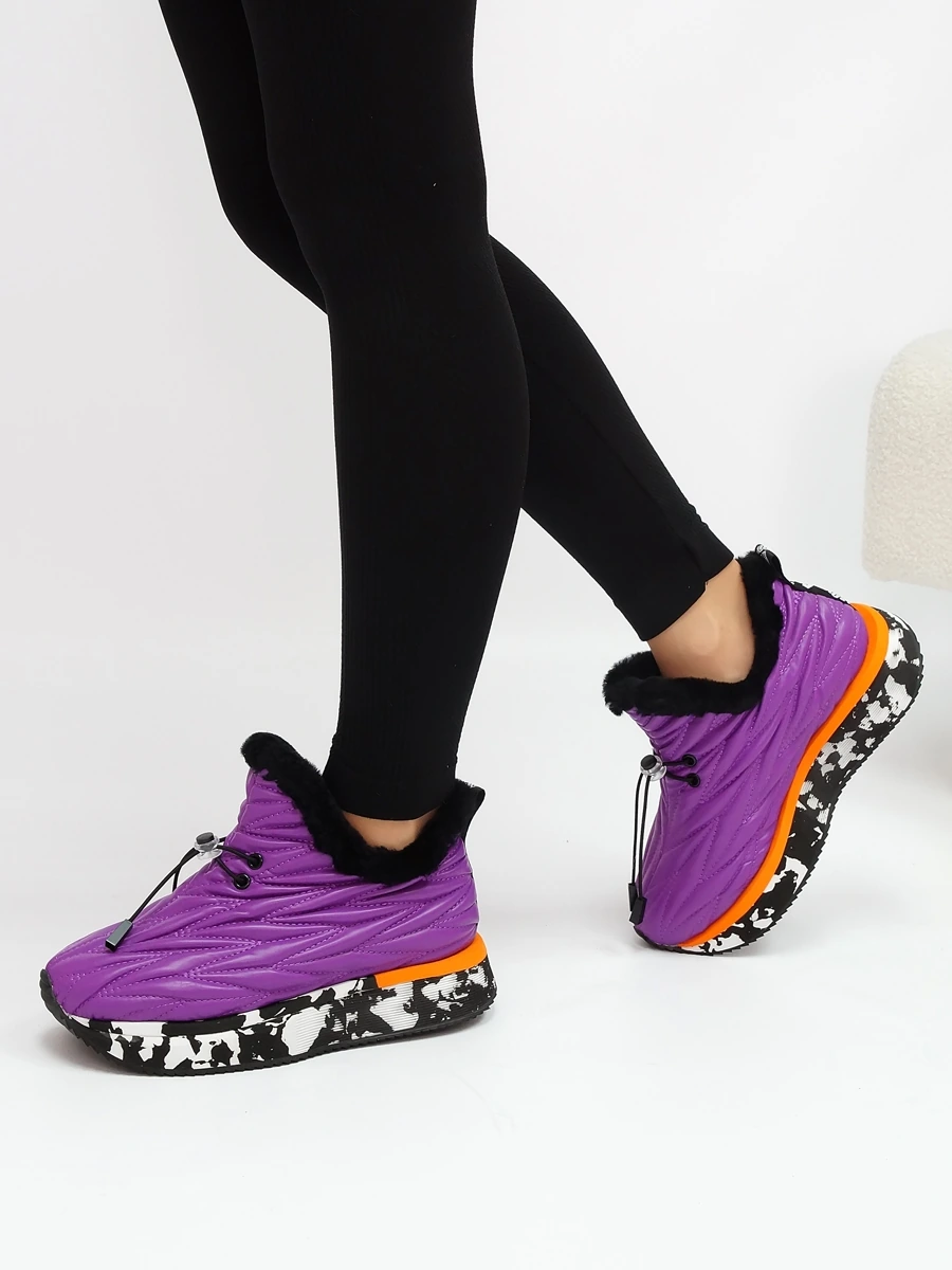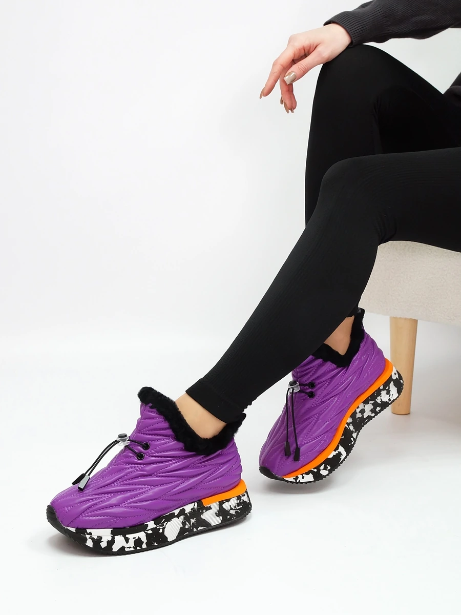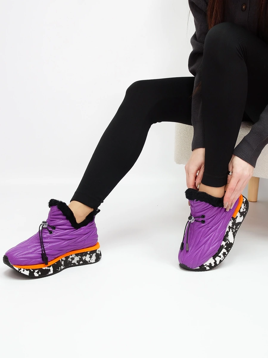 Женские зимние кроссовки – это тепло, комфорт и стиль в холодное время года! Натуральная кожа верха и натуральный мех обеспечат сухость и уют даже в сильные морозы. Удобная шнуровка-резинка позволяет быстро надевать обувь, а подошва из резины гарантирует отличное сцепление с поверхностью. Стильный фиолетовый цвет подчеркнет индивидуальность вашего образа.