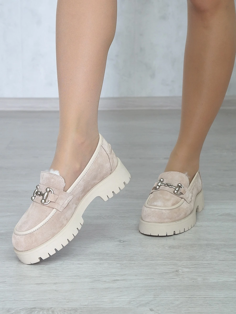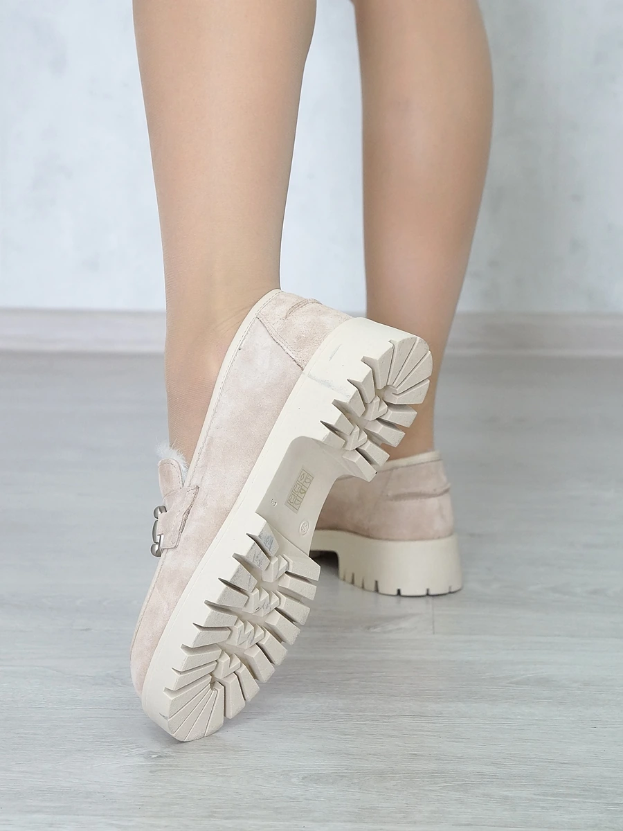 Лоферы из натуральной замши, замшевые лоферы, лоферы с мехом, зимние лоферы