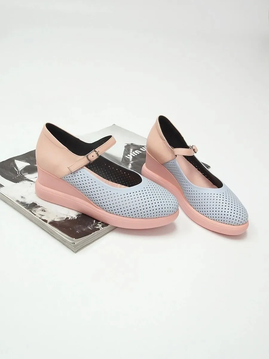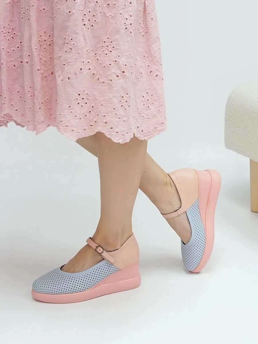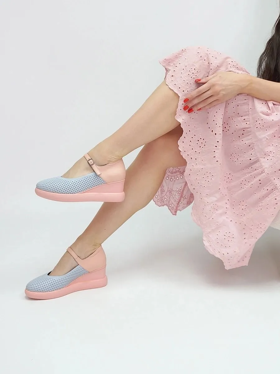 Эти туфли женские - классическая и комфортная летняя обувь. Туфли создают женственный образ, подчеркивают ноги. Удобная танкетка и закрытый нос придадут вашему образу неотразимости. Такая легкая, летняя и красивая обувь удовлетворит капризы даже самых строгих и взыскательных дам. Туфли женские летние - настоящий хит этой весны и лета. Нарядные праздничные туфли станут прекрасным дополнением вашего гардероба. Сочетайте модель с платьями, джинсами, брюками.