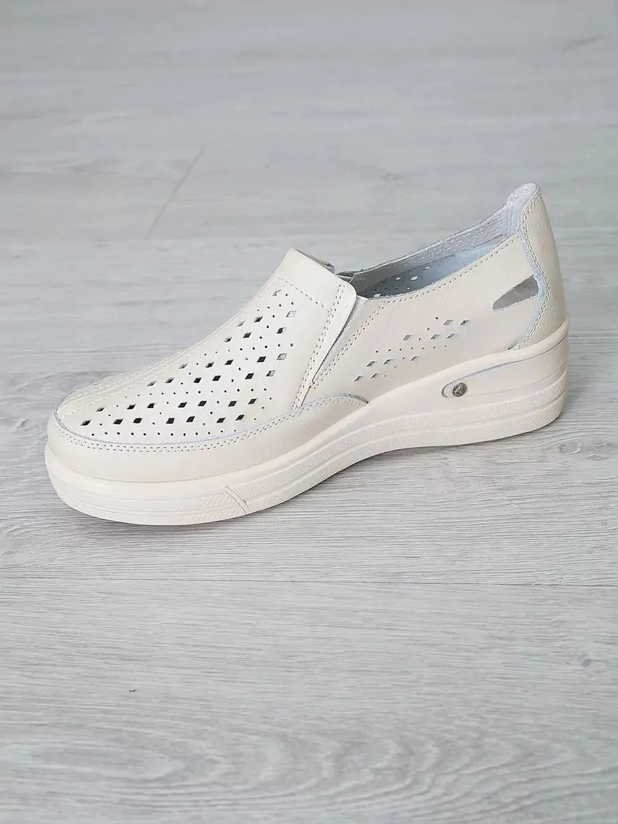 Удобная легкая обувь с закрытым мысом и пяткой подходит для работы, повседневной носки, прогулок. Для комфортного надевания и снятия туфли дополнены резинками. Женские туфли с легкостью дополнят ваш гардероб и станут вашей самой удобной и стильной обувью на лето.