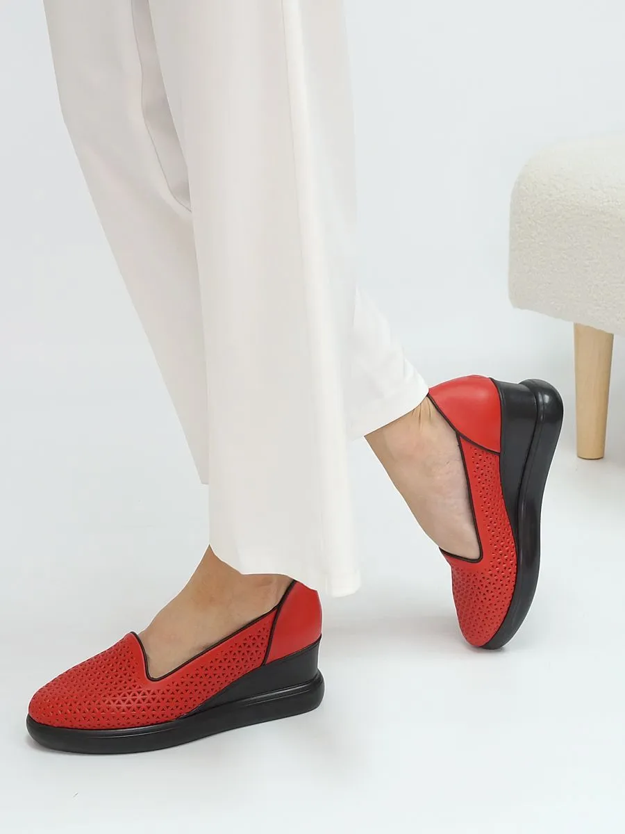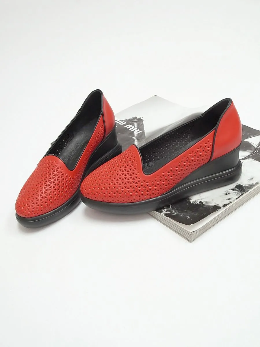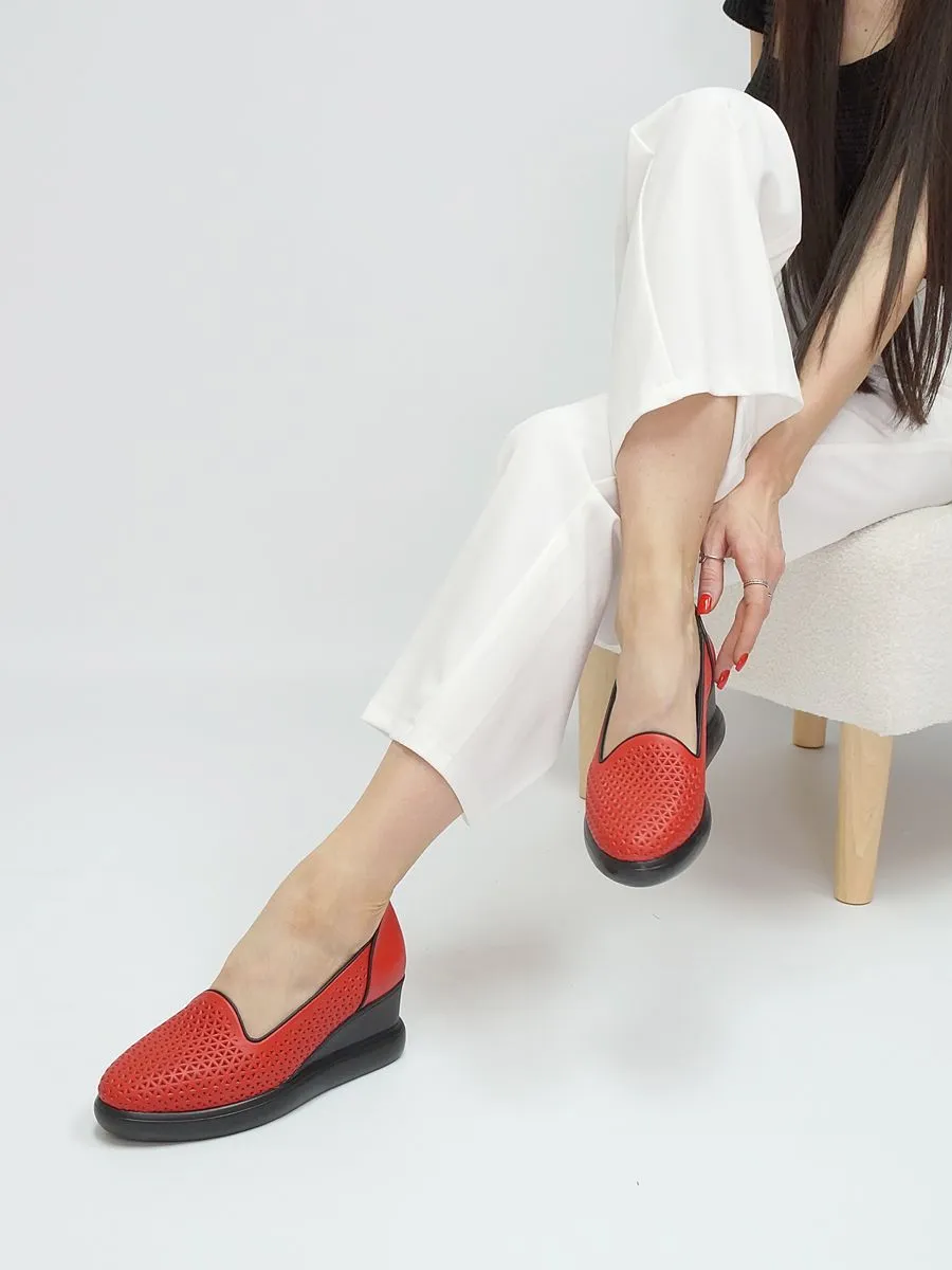 Эти туфли женские красные - классическая и комфортная летняя обувь. Туфли закрытые создают женственный и образ, подчеркивают ноги. Удобная танкетка и закрытый нос придадут вашему образу неотразимости. Такая легкая, летняя и красивая обувь удовлетворит капризы даже самых строгих и взыскательных дам. Туфли женские летние красные - настоящий хит этой весны и лета. Нарядные праздничные туфли станут прекрасным дополнением вашего гардероба. Сочетайте модель с платьями, джинсами, брюками.