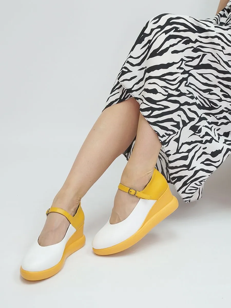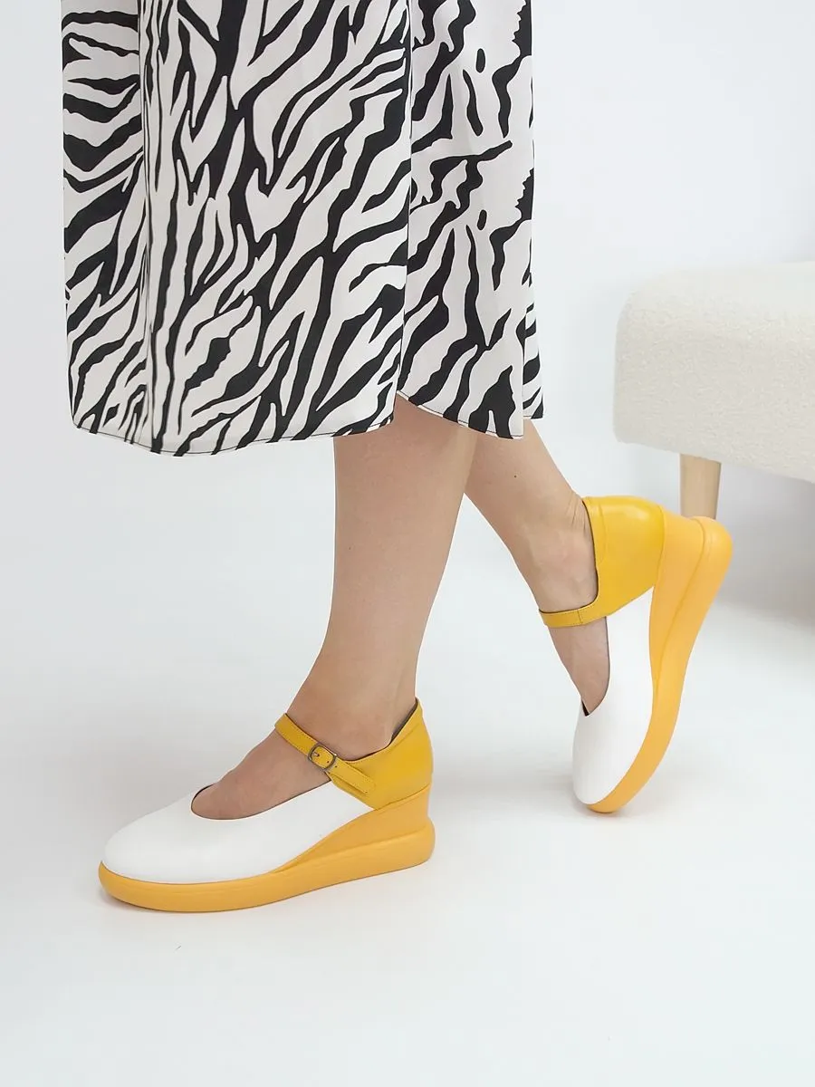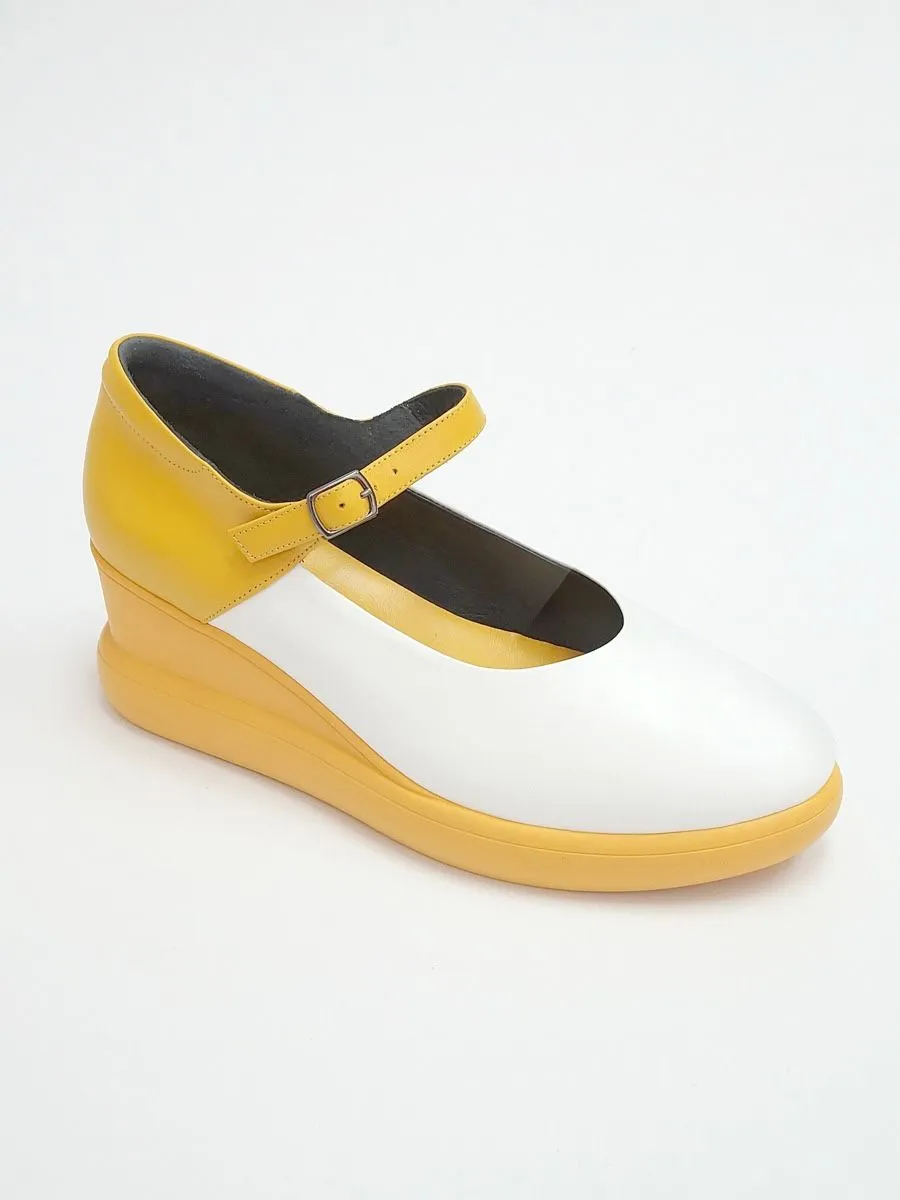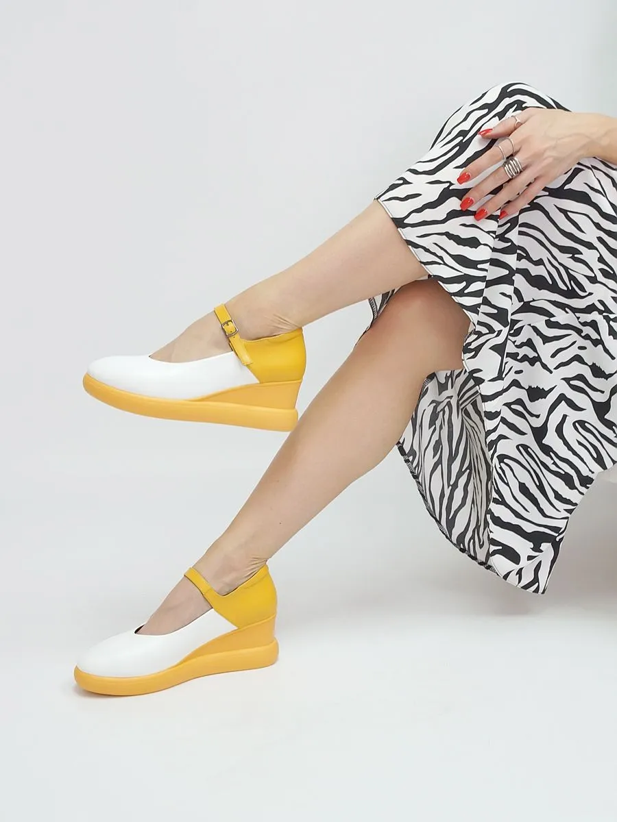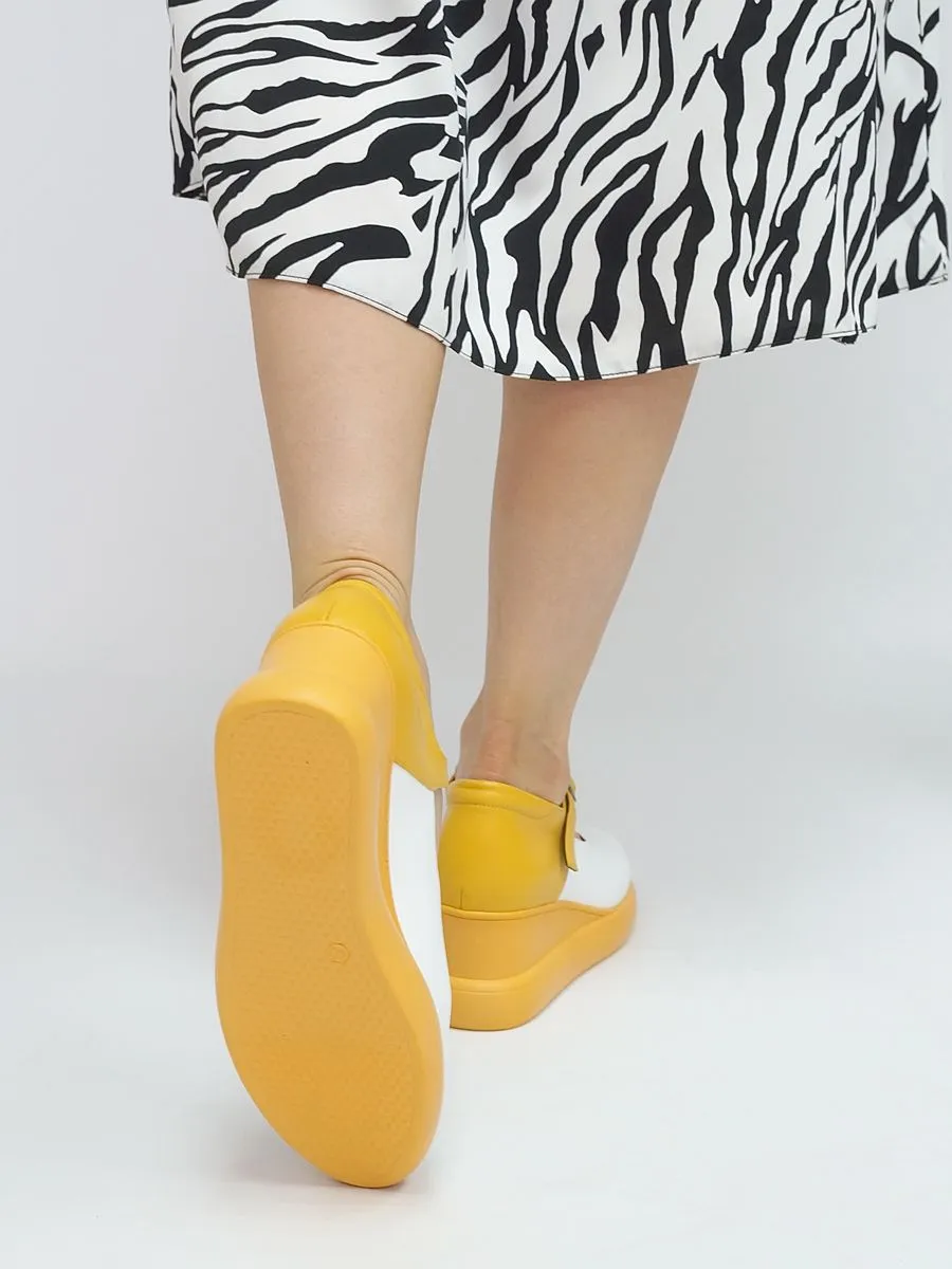 Эти туфли женские - классическая и комфортная летняя обувь. Туфли желтые создают женственный образ, подчеркивают ноги. Удобная танкетка и закрытый нос придадут вашему образу неотразимости. Такая легкая, летняя и красивая обувь удовлетворит капризы даже самых строгих и взыскательных дам. Туфли женские летние - настоящий хит этой весны и лета. Нарядные праздничные туфли станут прекрасным дополнением вашего гардероба. Сочетайте модель с платьями, джинсами, брюками.