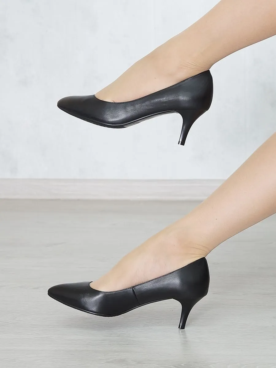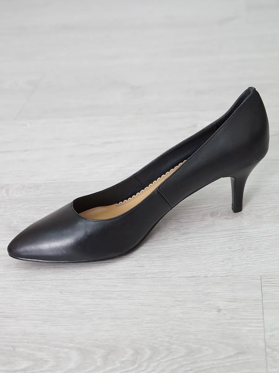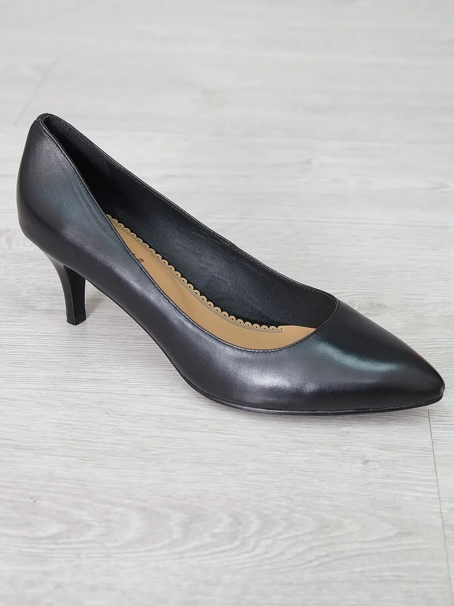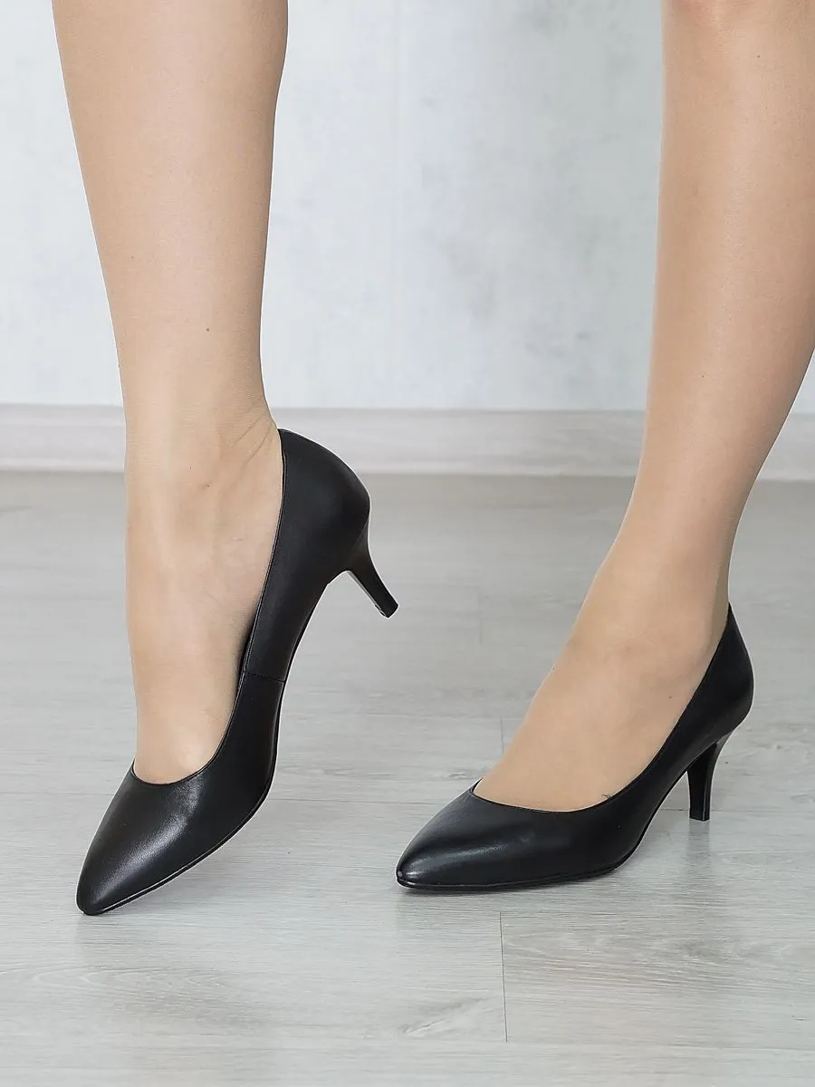 Стильные кожаные туфли лодочки — это универсальная и комфортная обувь. Элегантные лодочки на каблуке впишутся в женский гардероб и гармонично дополнят любой Ваш образ. Данная модель обуви для женщин никогда не выходит из моды, всегда позволяет любой девушке быть в тренде. Удобная колодка и не высокий каблук поддерживают ногу в комфортном положении в течение всего дня. Черные женские туфли изготовлены из натуральной кожи.