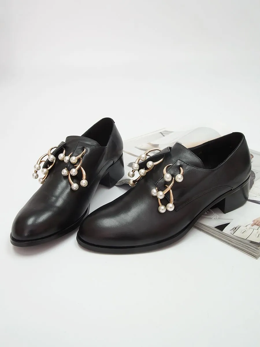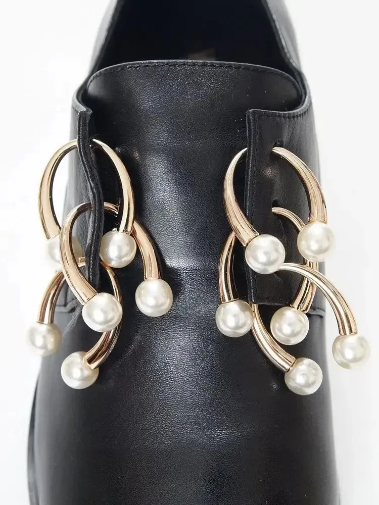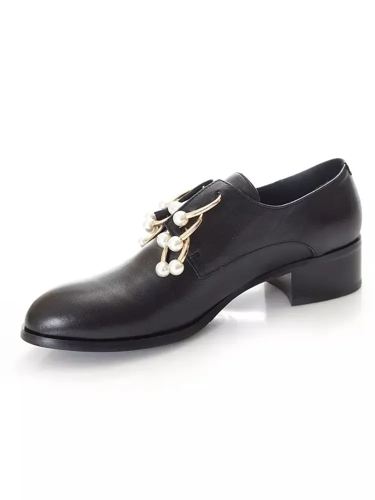 Туфли женские дерби черные на низком каблуке - это качественная и удобная обувь. Стильные кожаные демисезонные женские туфли станут незаменимой обувью для любого образа. Бусины придают оригинальность. Натуральная кожаная обувь имеет такие преимущества как эластичность, прочность, долговечность. Кожа хорошо пропускает воздух и не позволяет стопе потеть, создавая комфортные условия на весь день.